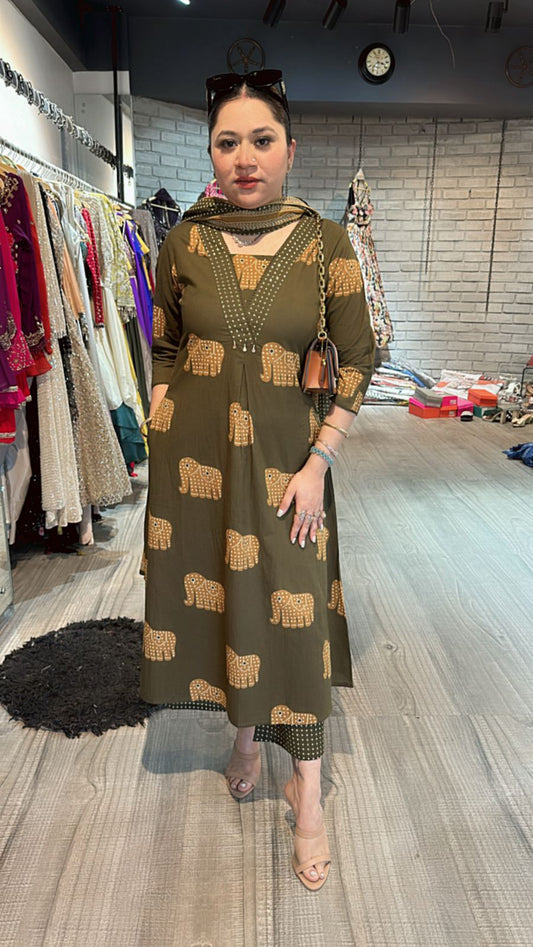 Kanpur Tangy Orange Mirror A-Line Cotton suit