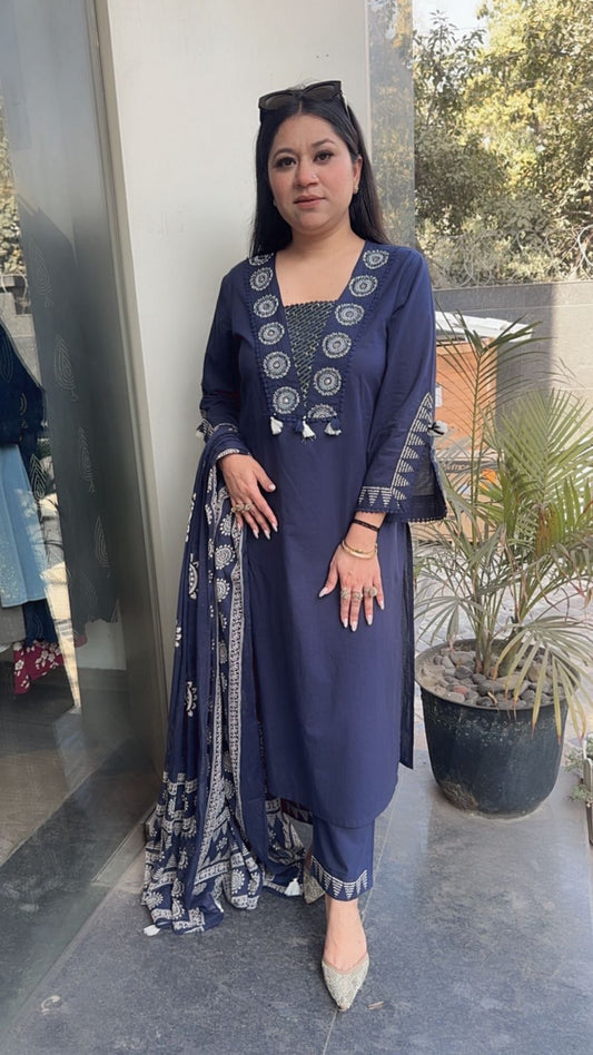 Kajra Navy Blue Designer Cotton Suit