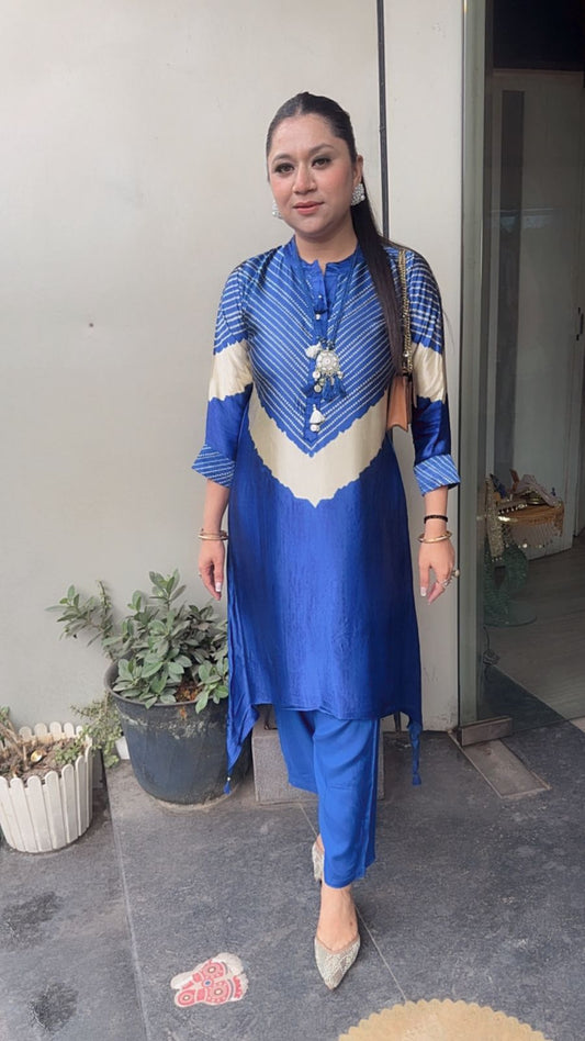 Ziory Electric Blue Digital Tunic Set (with Neck pc)
