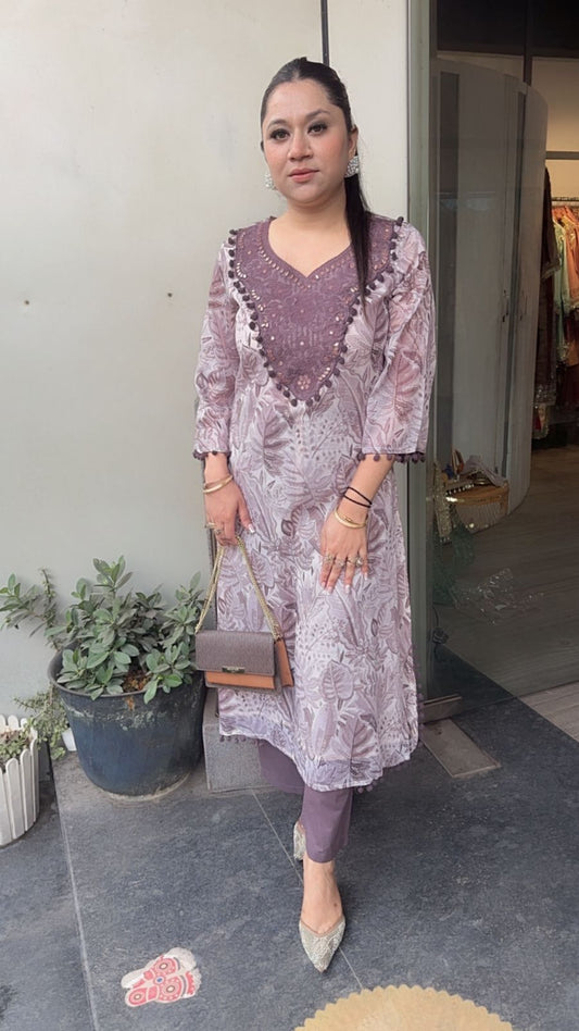 Bombay Lavander Digital Pom Pom Tunic Set