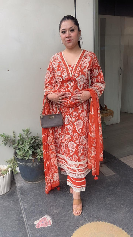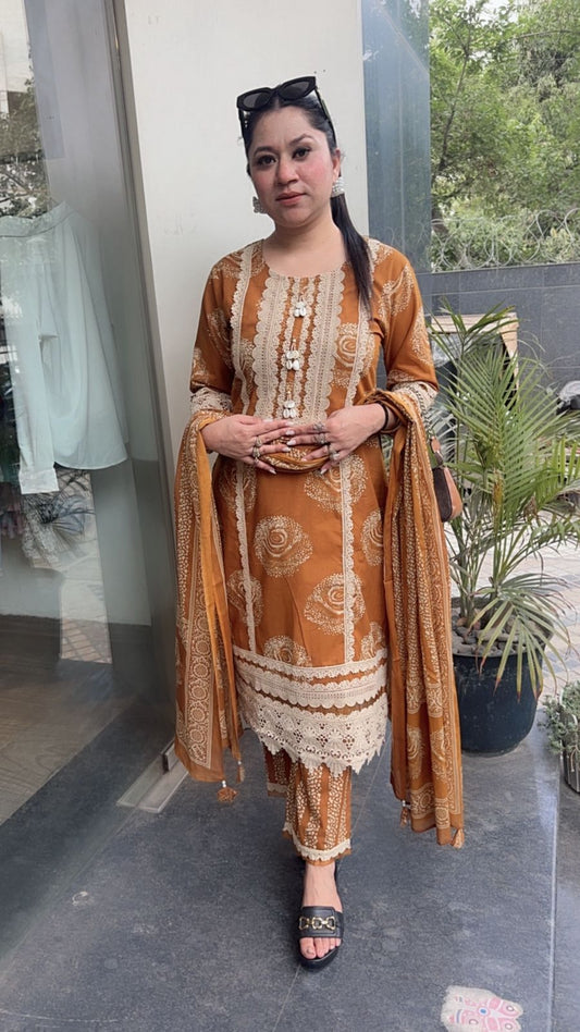 Samber Rust Digital print Designer Cotton Suit