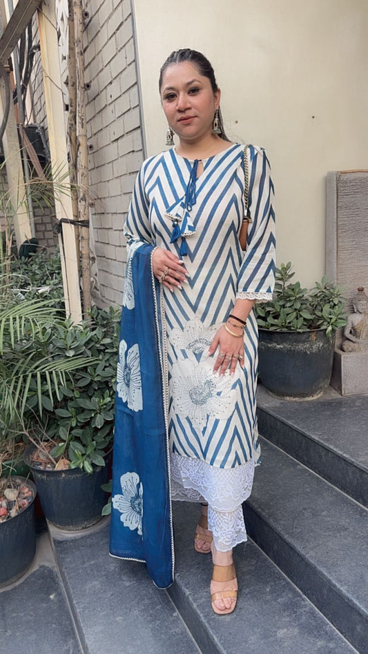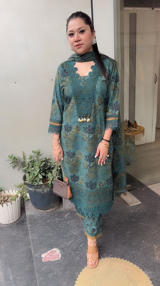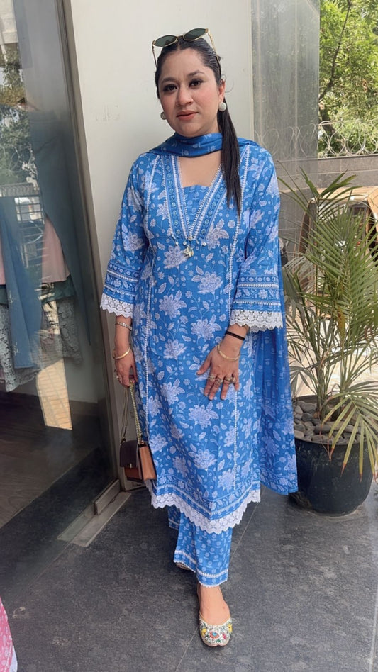Iris Lace work Digital Print Designer Cotton Suit