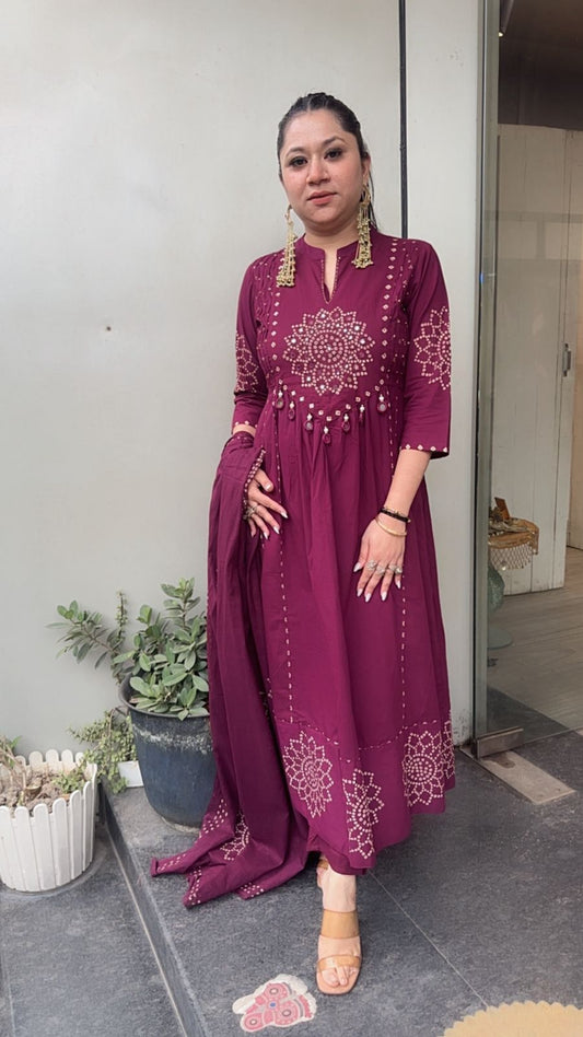Elaichi Wine Cotton Anarkali Designer Cotton Suit