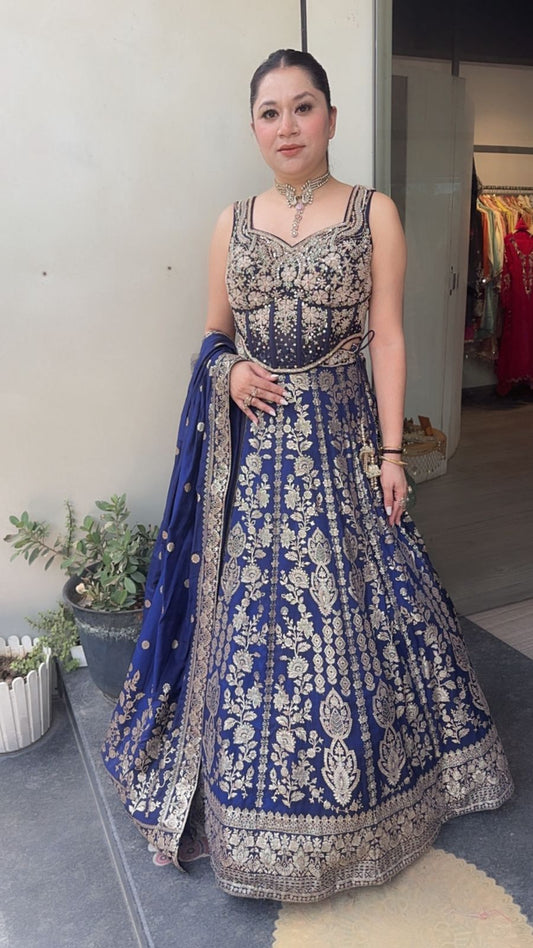 Jodha Navy Blue Banarasi Designer Lengha