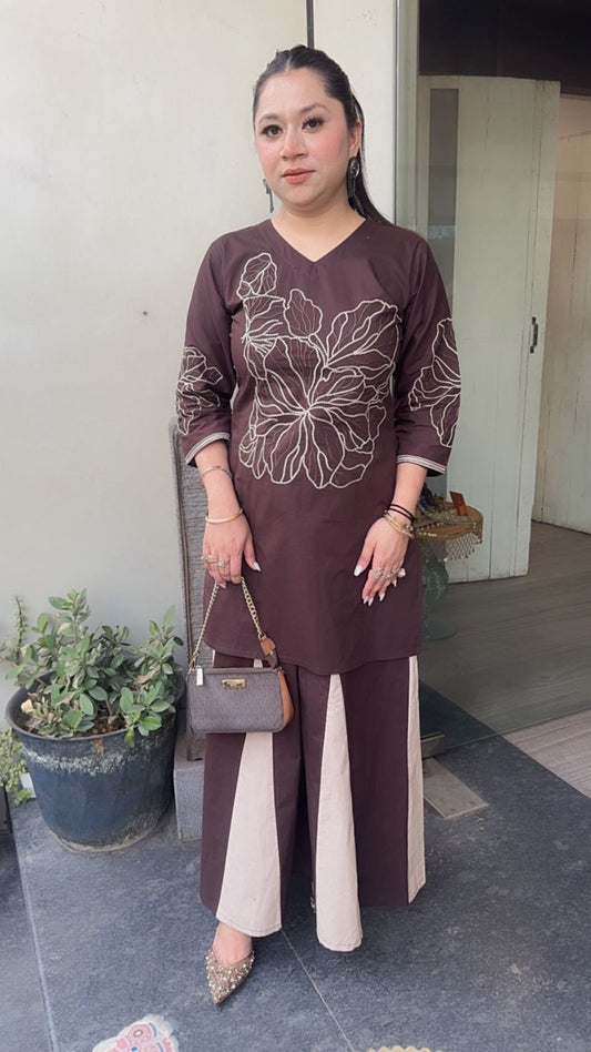 Urban Brown Beige Cotton Designer Cordset