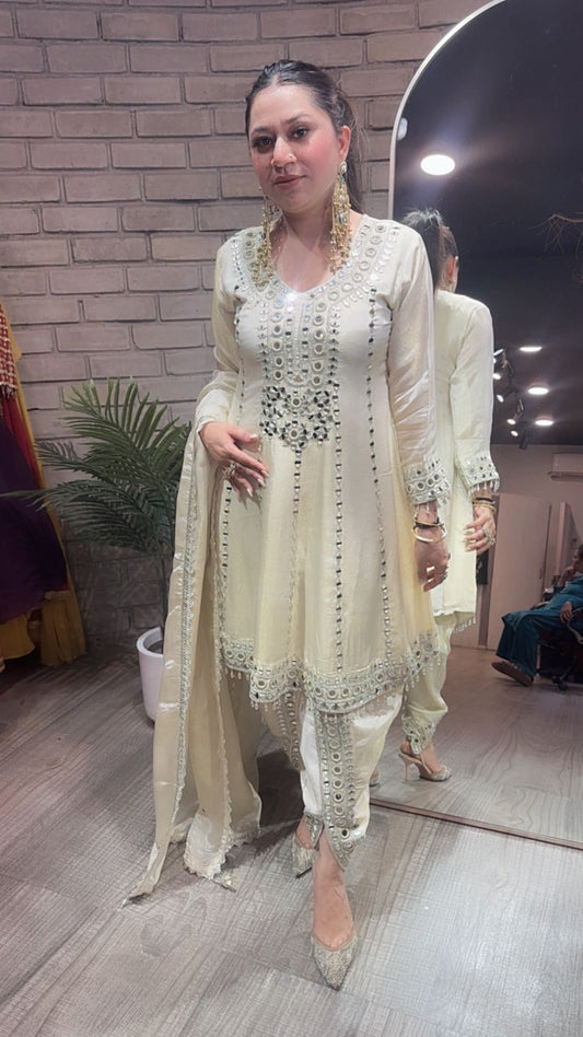 Farzi Ivory mirror work Dhoti Style Suit