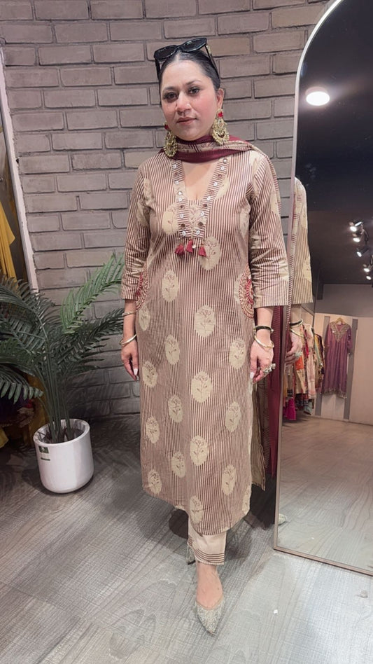 Leela Mahroon Beige Designer Cotton Suit
