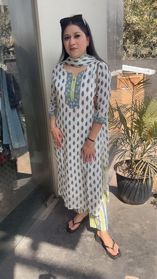 Leela Blue Beige Designer Cotton Suit