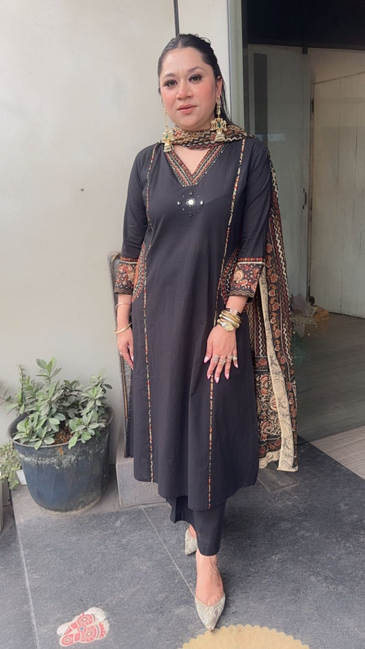 Zainab Black Floral Cotton Suit