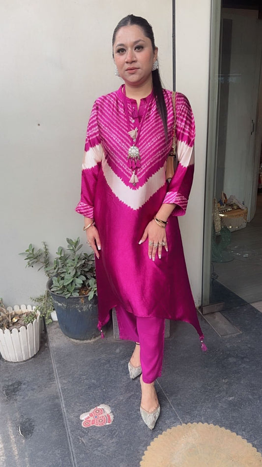 Ziory Magenta Pink Digital Tunic Set (with Neck pc)