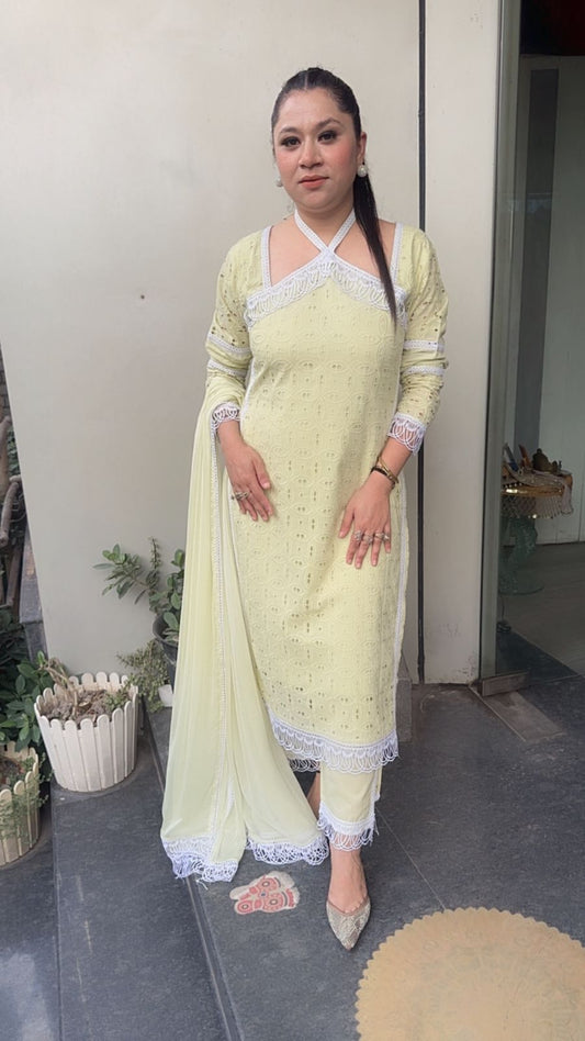 Chikankari Strappy kurta set 2pc