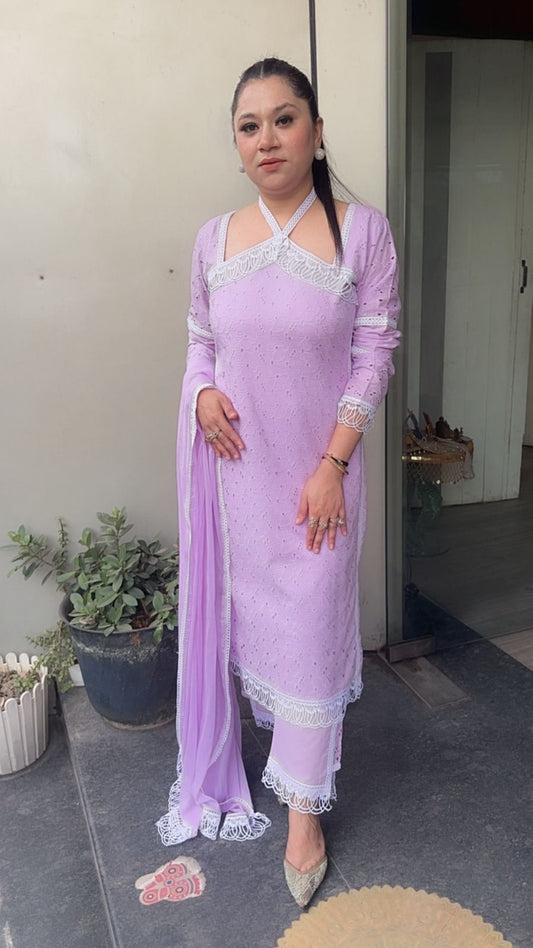 Kanjak Lavander Crisscross Designer Suit