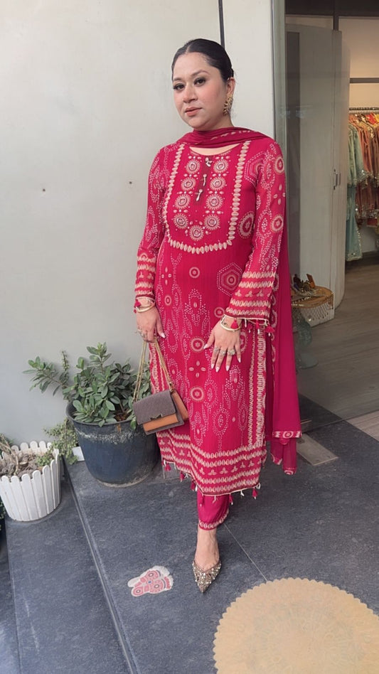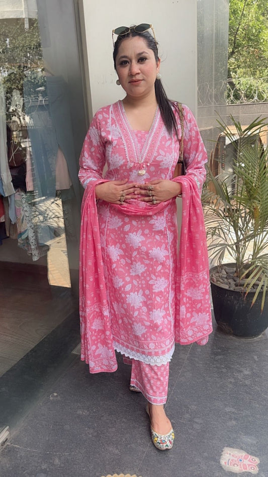 Zoe Pink A-Line Digital Print Designer Cotton Suit