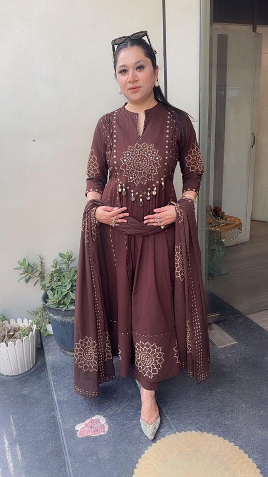 Elaichi Coffee Brown Cotton Anarkali Designer Cotton Suit