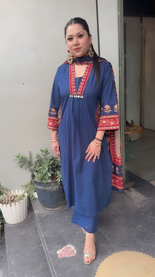 Gillori Blue A-Line pocket Cotton Designer Suit