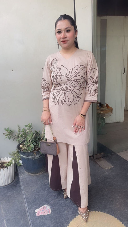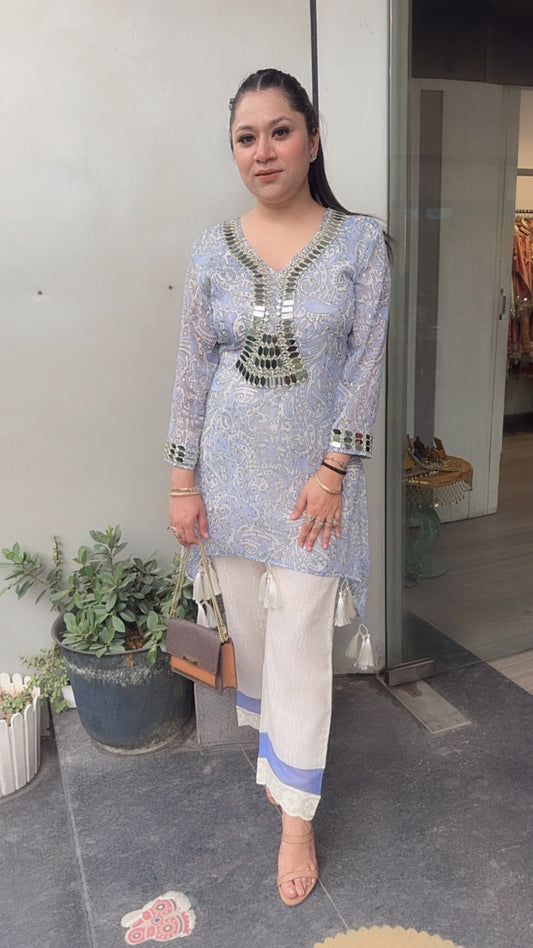 Short chikankari kurta with tulip pants 2pc