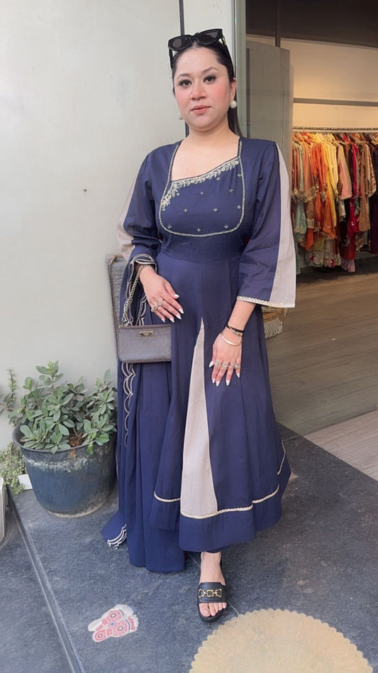 Sanorita Navy Blue mouse Cotton Anarkali Designer Suit