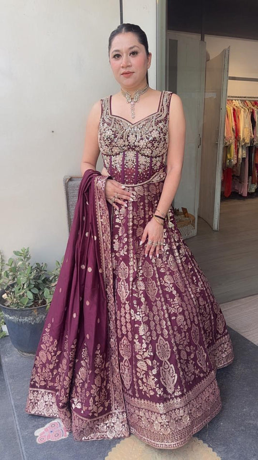 Mirza Mahroon Designer Anarkali Suit