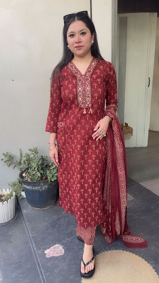 Wine Ruffle Dupatta suit