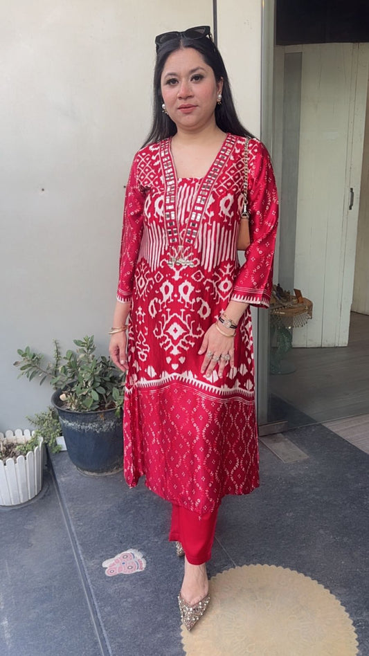 Saunf Red Ivory Digital cotton Designer Suit