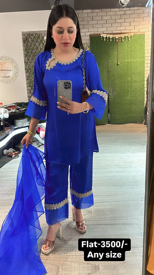 Ebadat Navy Blue Crush katdana velvet Suit with potli