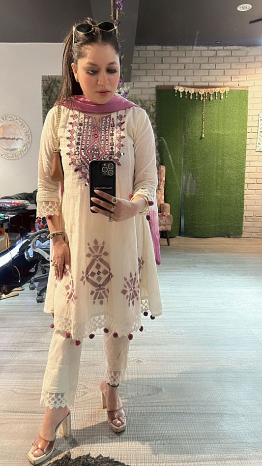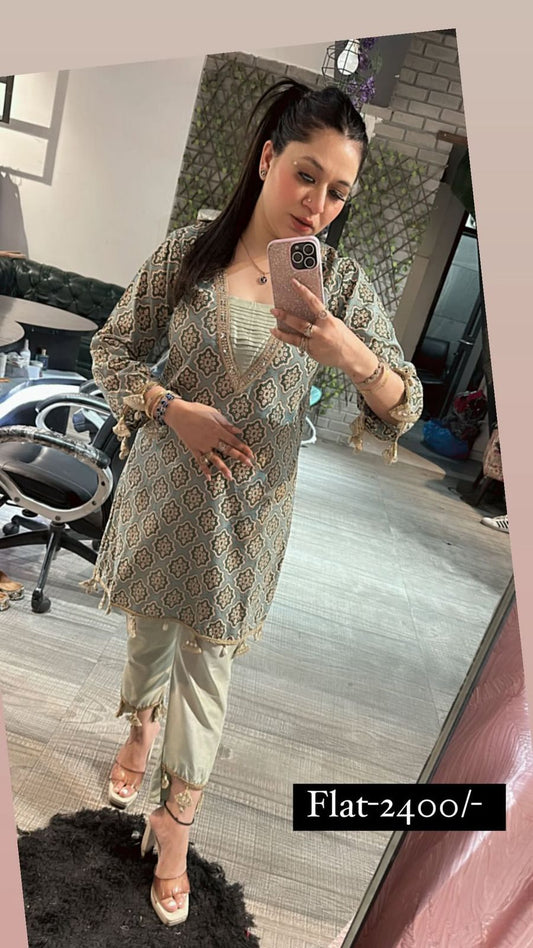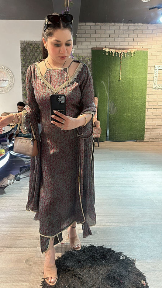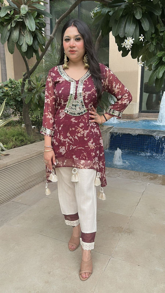 Egypt Mirror Mahroon Tassel Digital print cordset