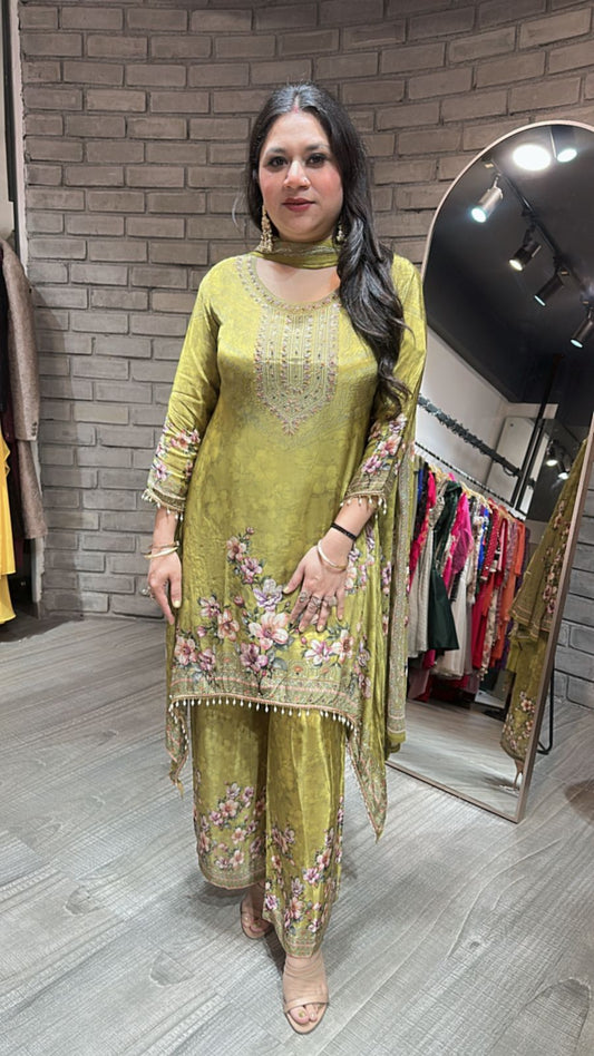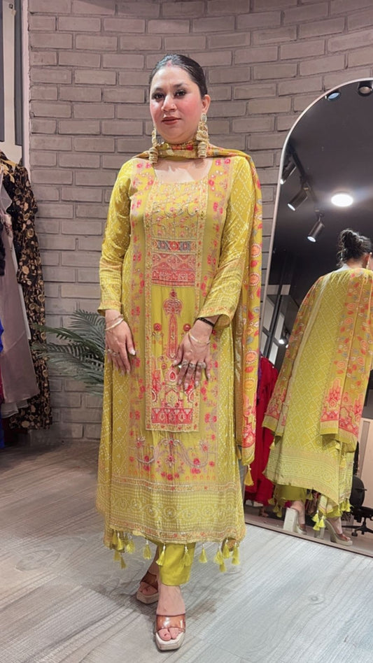 Gulzar Lime Digital C-Cut Designer suit