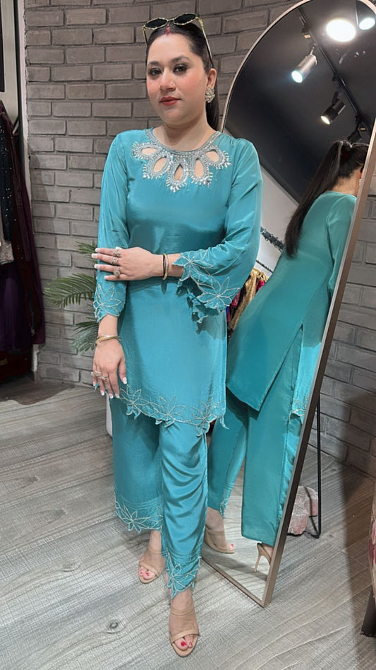 Gulmohar Teal Blue Katdana Cordset
