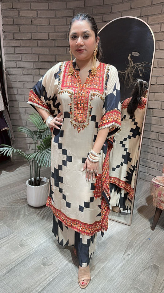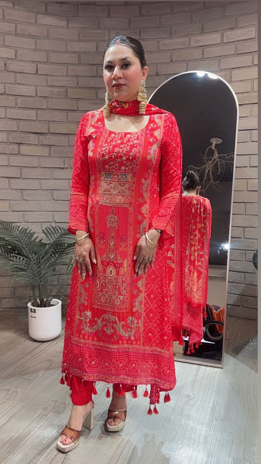 Gulzar Red Digital C-Cut Designer suit