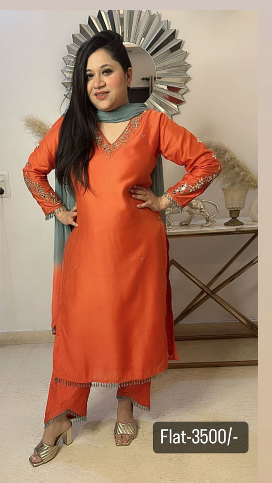 Orange Ombré katdana suit 3pcs