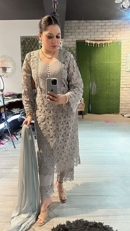 Sold outPernia Grey crochet Lace Suit