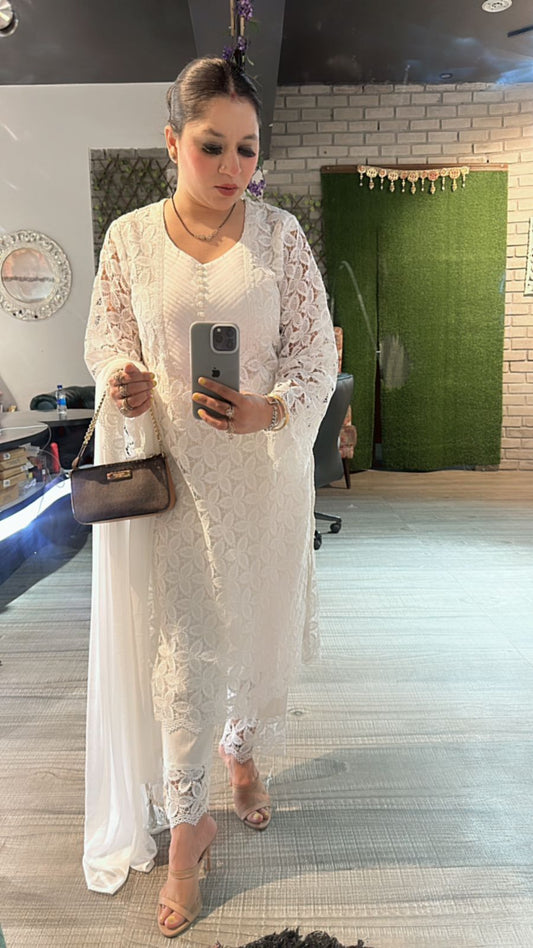 Sold outPernia white crochet Lace Suit