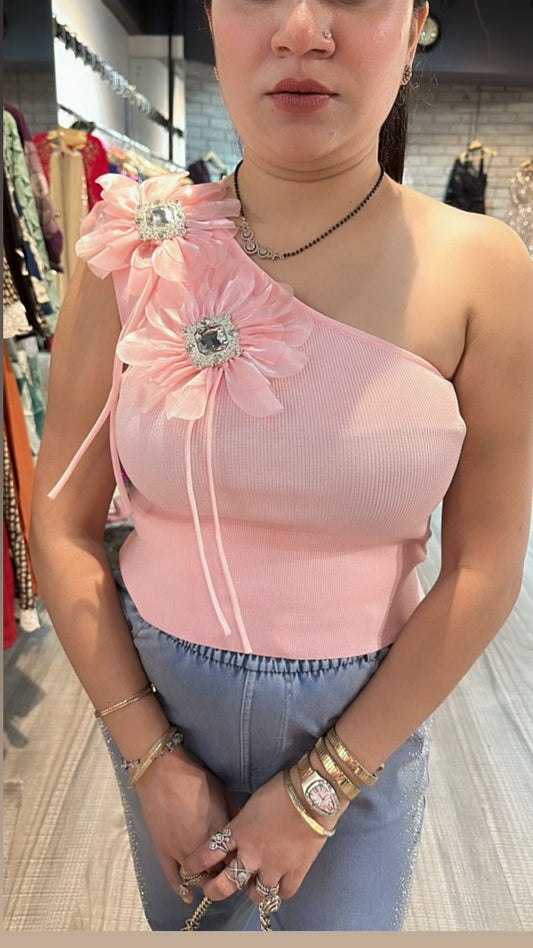Sold outPink 3D one shoulder Flower Top
