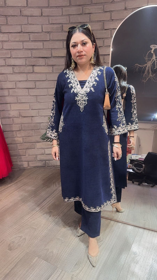 Miera Navy Blue pocket Woolen Cordset