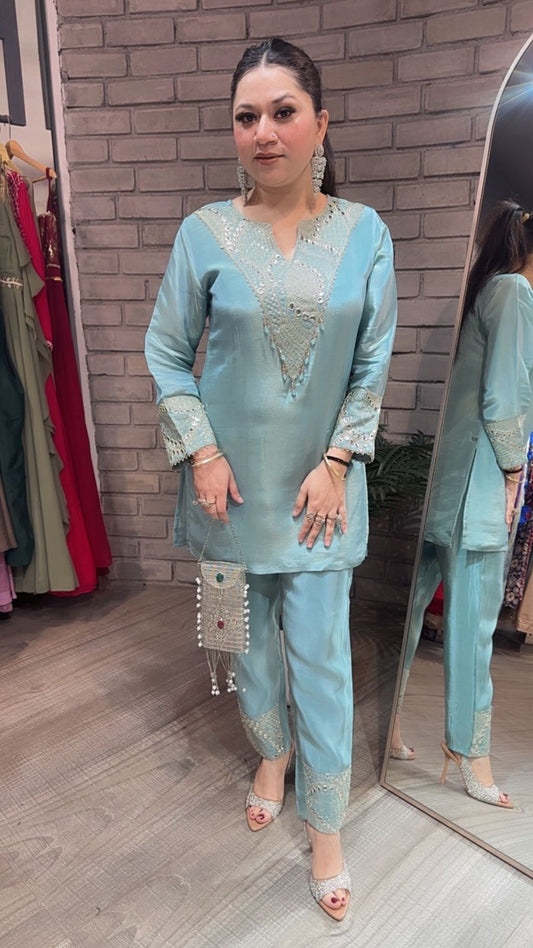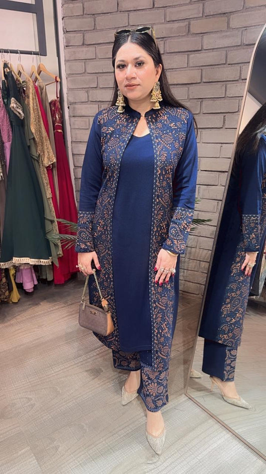 Lodhi Teal Blue Floral Emboss Velvet Anarkali