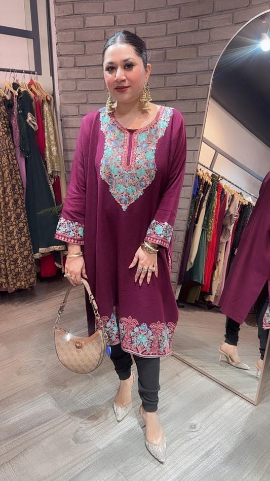 Sold outJammu wine phiran Thread embroidered