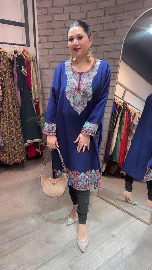 Jammu Navy Blue phiran Thread embroidered