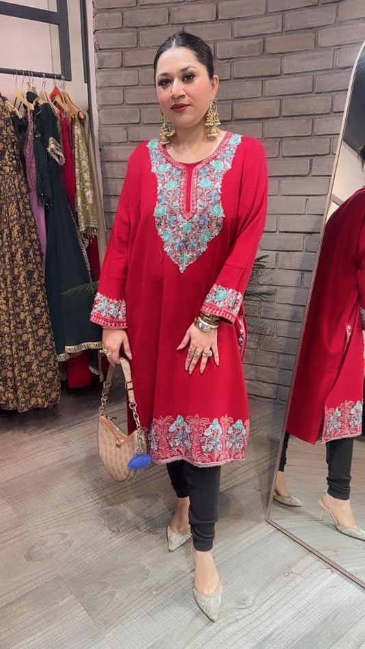 Jammu Red phiran Thread embroidered