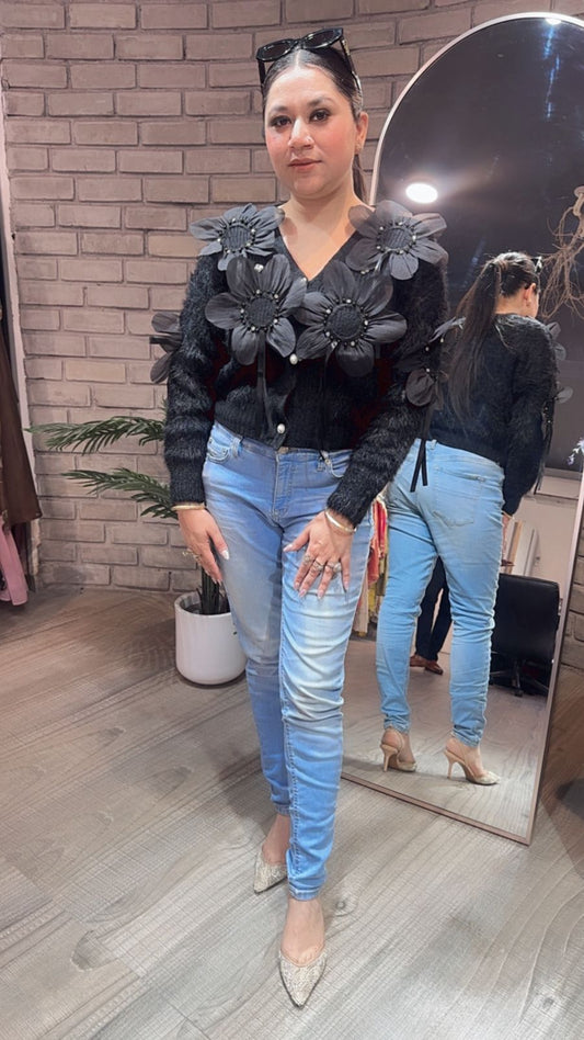 Flowy Black 3D Sweater