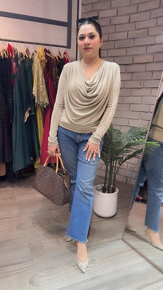 Cowl Beige knitted full Sleeve Top