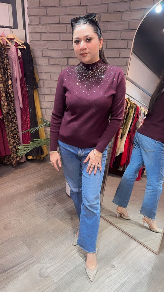 Swag Brown knitted full Sleeve Top