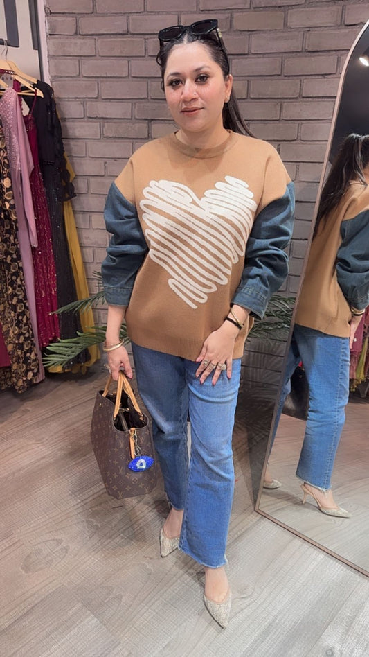 Hugo Beige Heart Denim Woolen Sweater