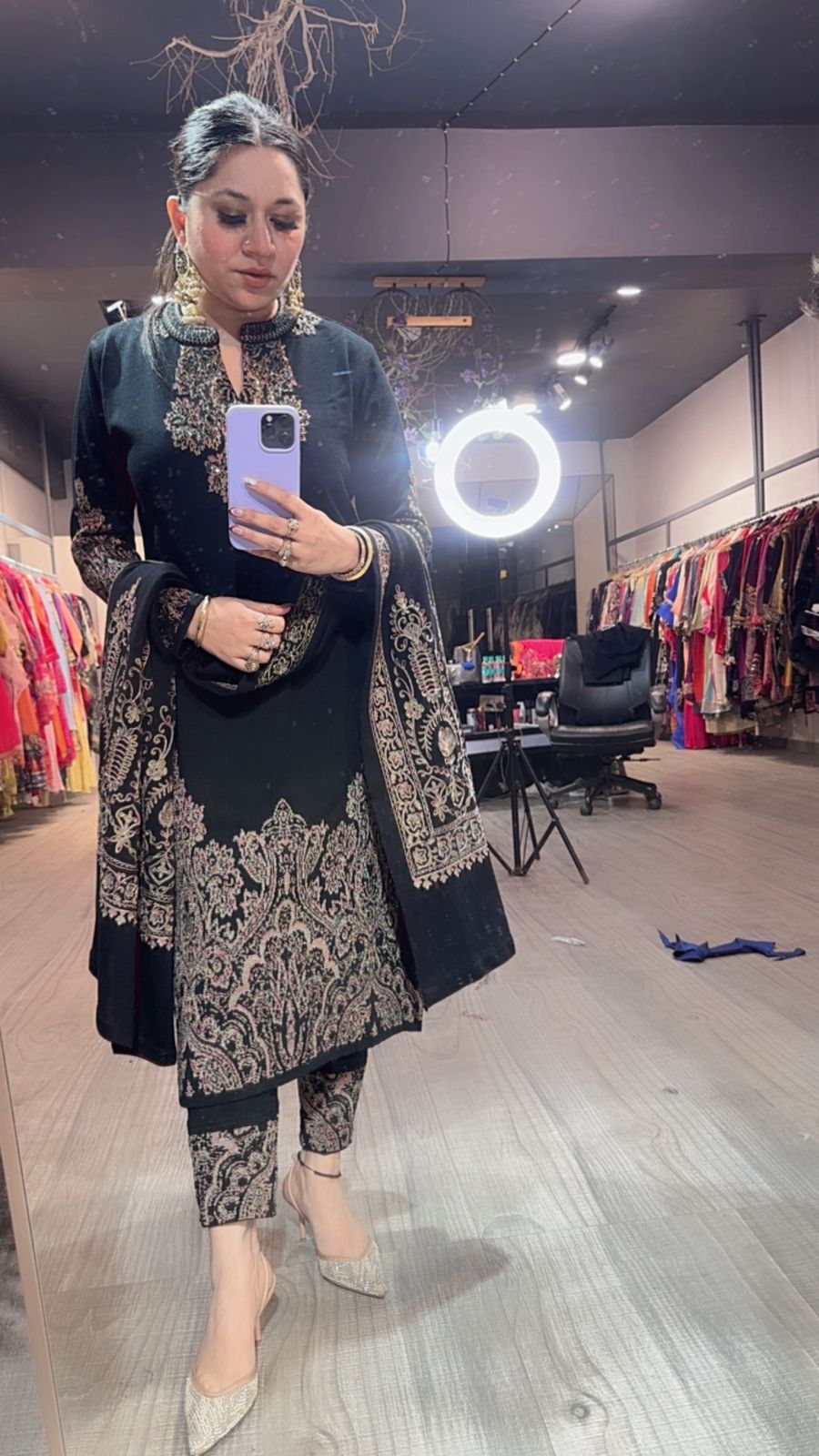 Chilli Black Woolen Designer suit