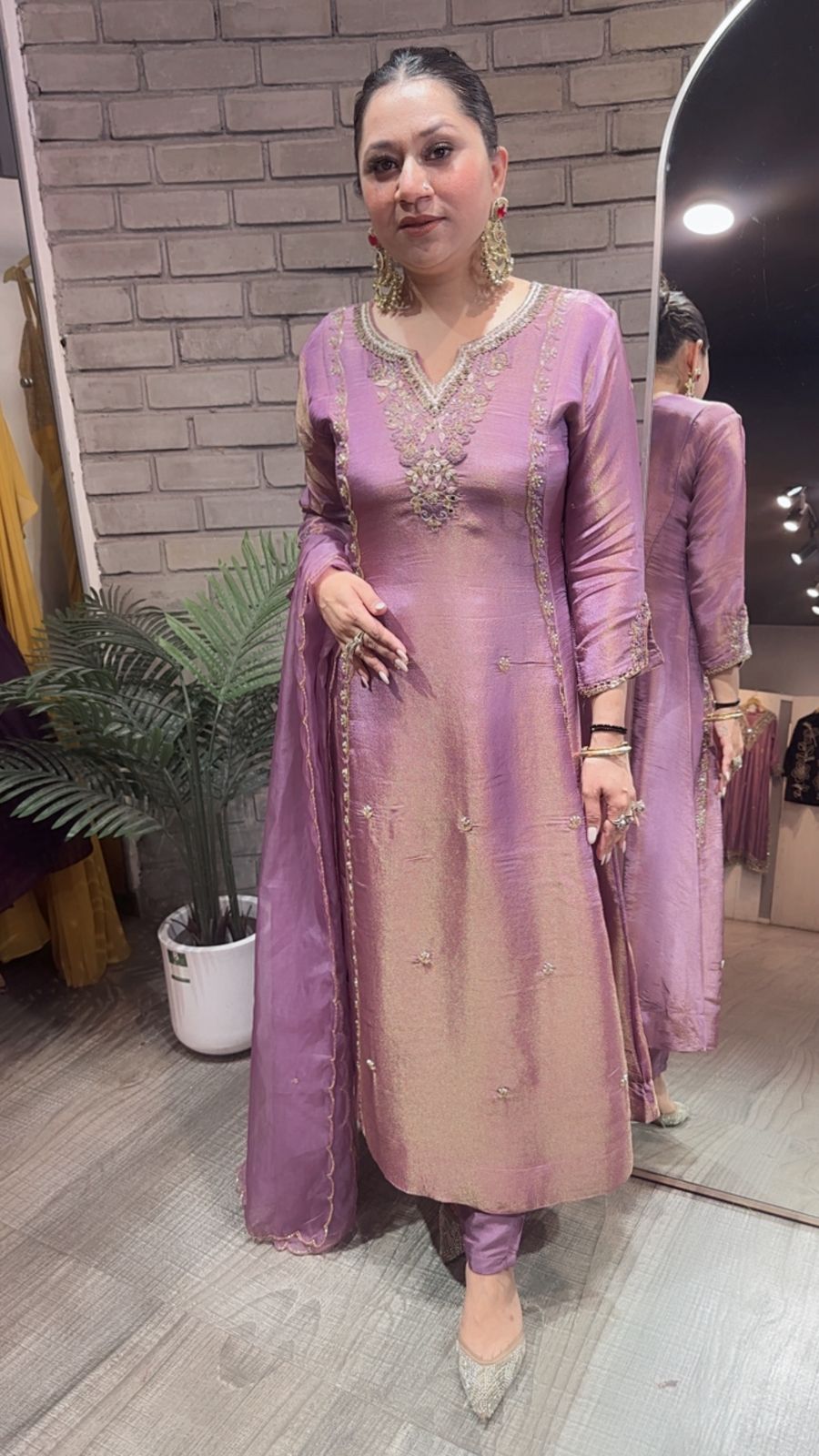 Curry lavander Designer A-Line Cotton Shimmer Suit