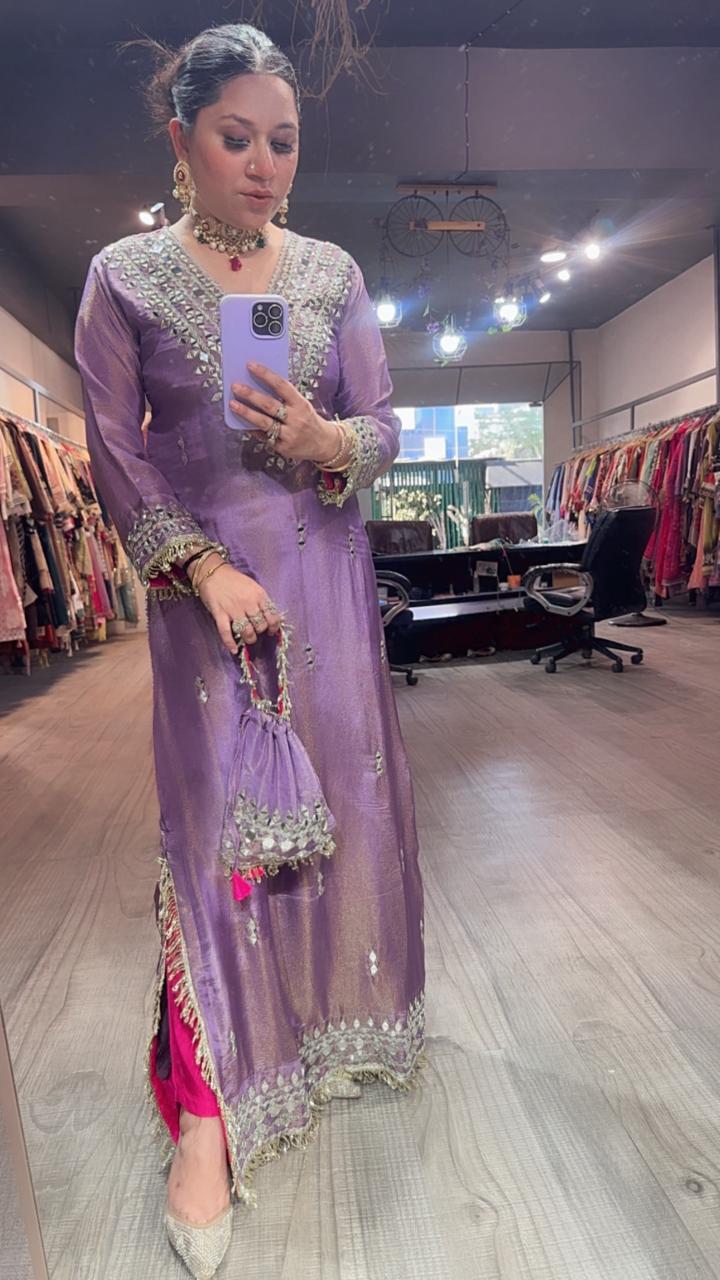 Kareena kapoor Lavander with pants Mirror Dress with Potli