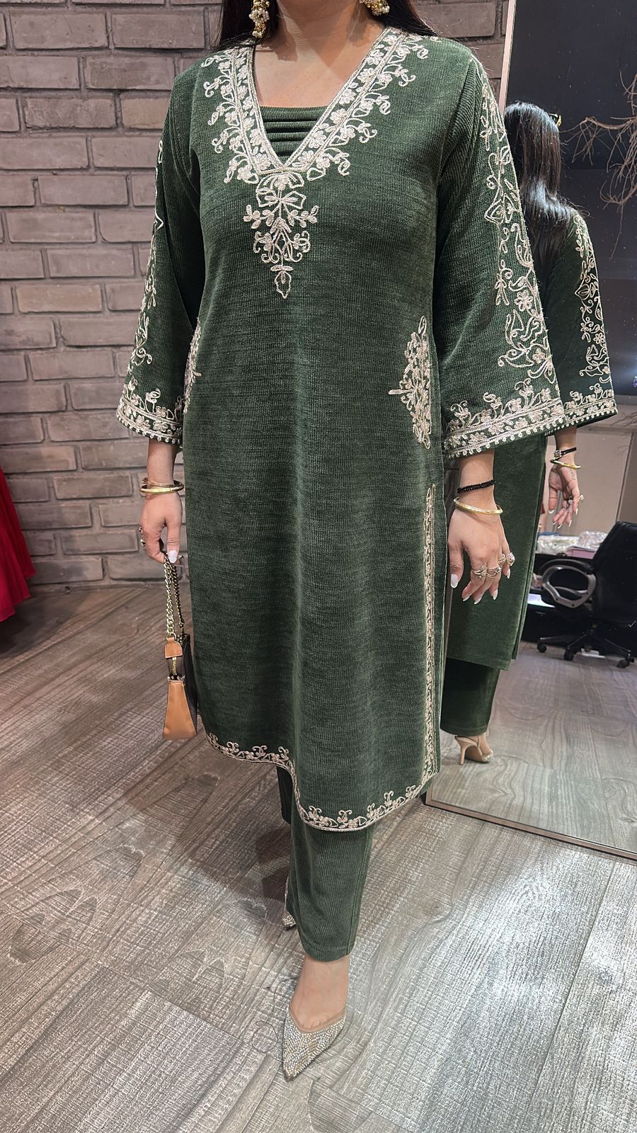 Miera olive Green pocket Woolen Cordset