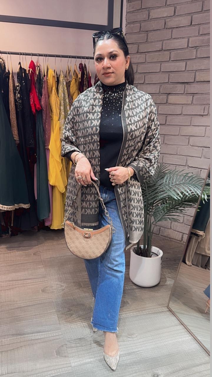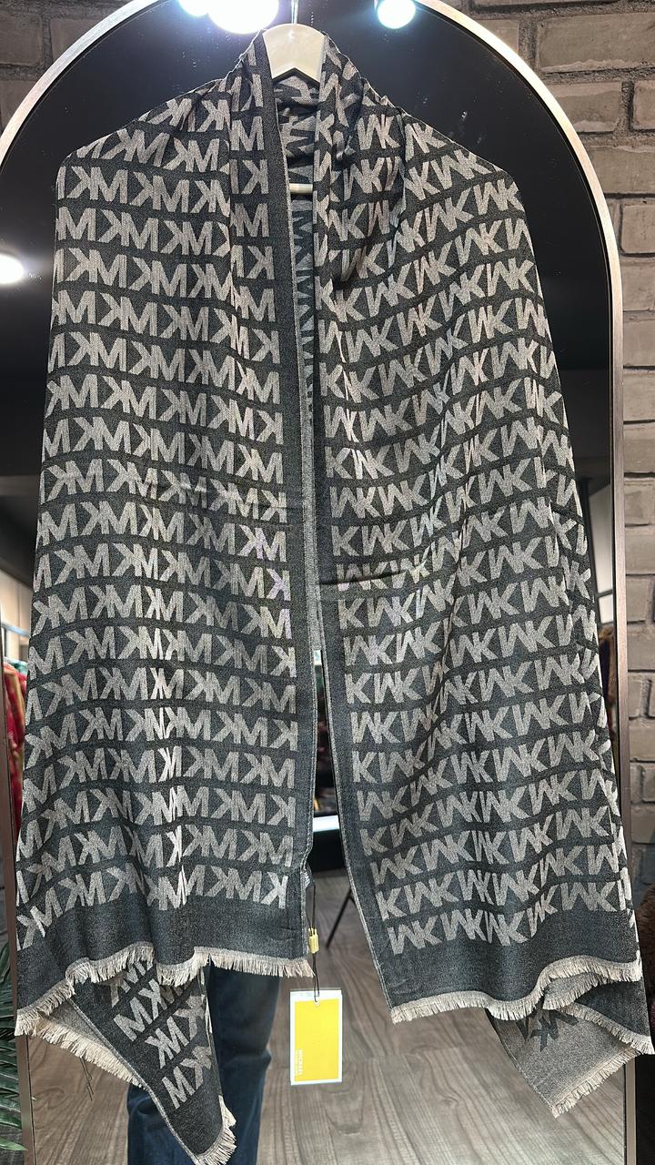 Mk Beige Grey Semi Woolen Stole
