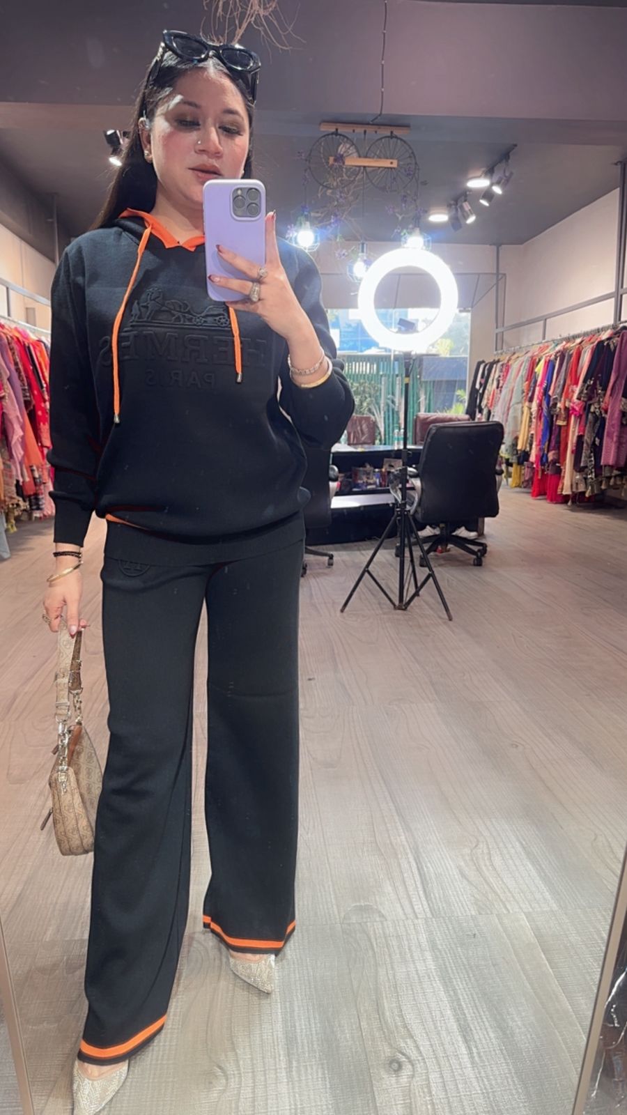 Oscar Black Woolen hoody cordset